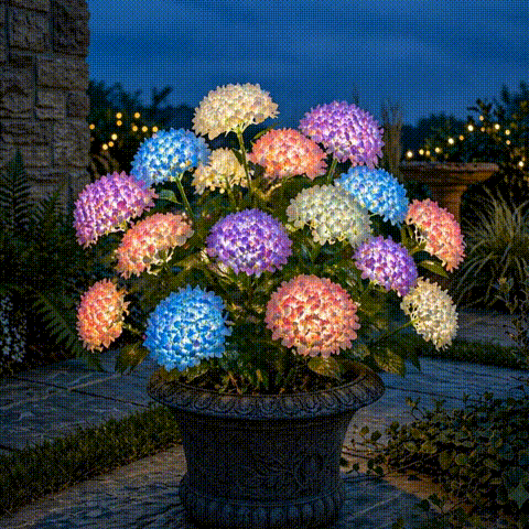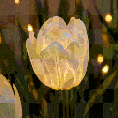 Looks like decorative flowers during the day. Transforms into glowing garden lights at night.