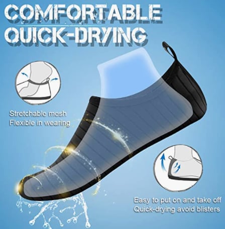 Convenience: The Swim Shoes Makes Feet more Freedom with High-Quality Fabric and Protect your Barefoot from Hurting during Playing and the Material Upper Makes Beach Shoes Breathable and Comfortable during Water Sports.