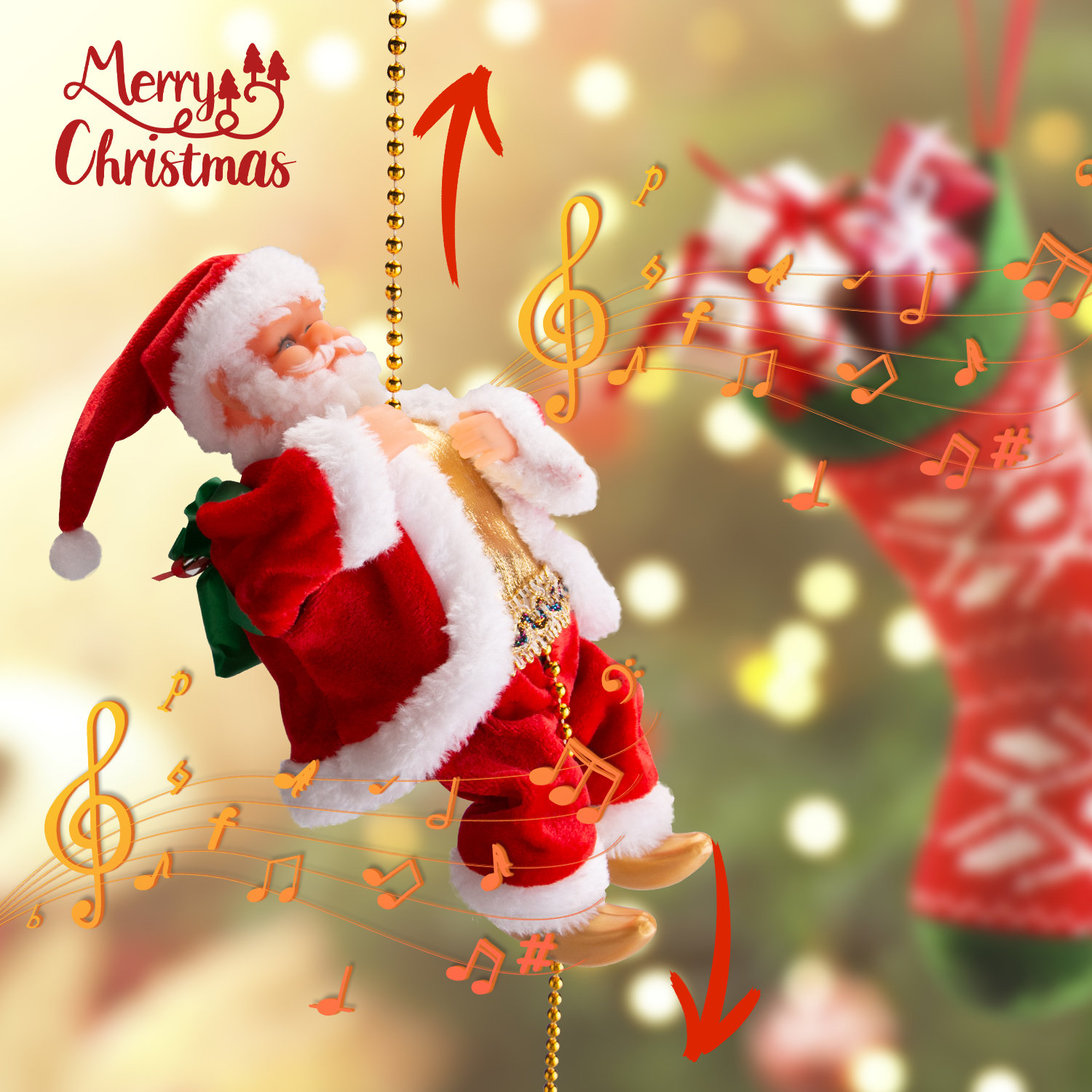 🥰Add Fun: Father Christmas climbing up and down the rope with music will add more fun to your holiday, enjoy a happy Christmas.